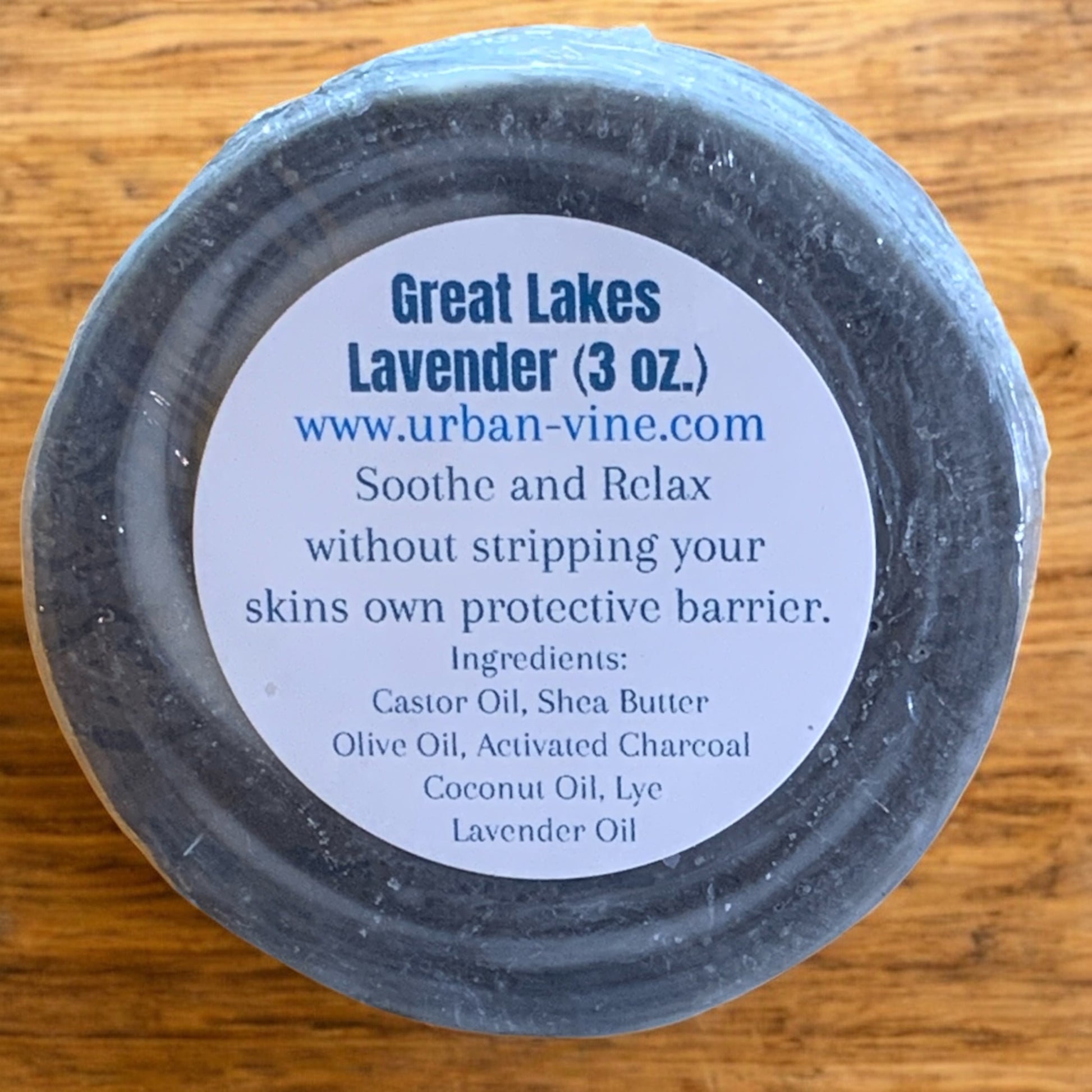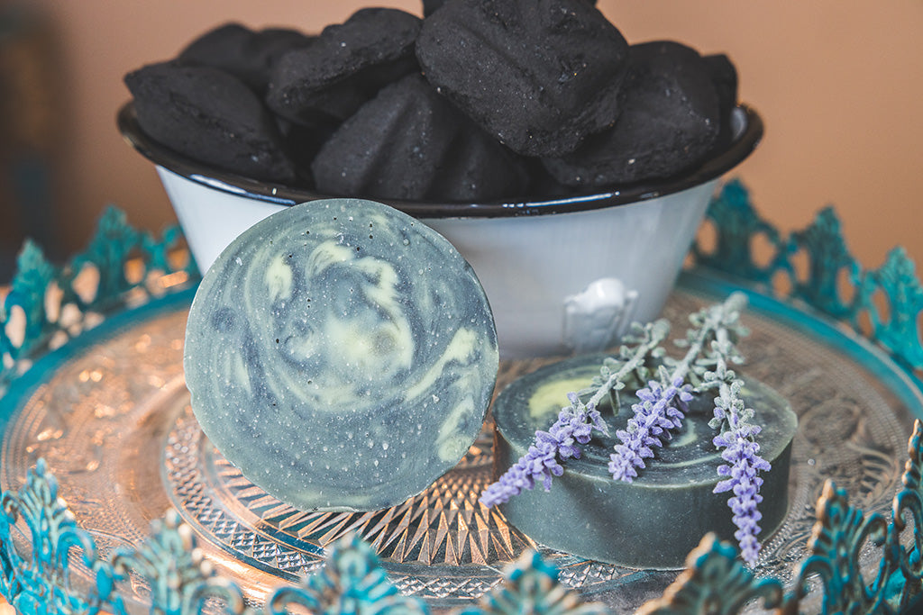 INGREDIENTS: Olive Oil, Shea Butter, Coconut Oil, Castor Oil, Lavender essential oil, Charcoal Powder, Lye and water