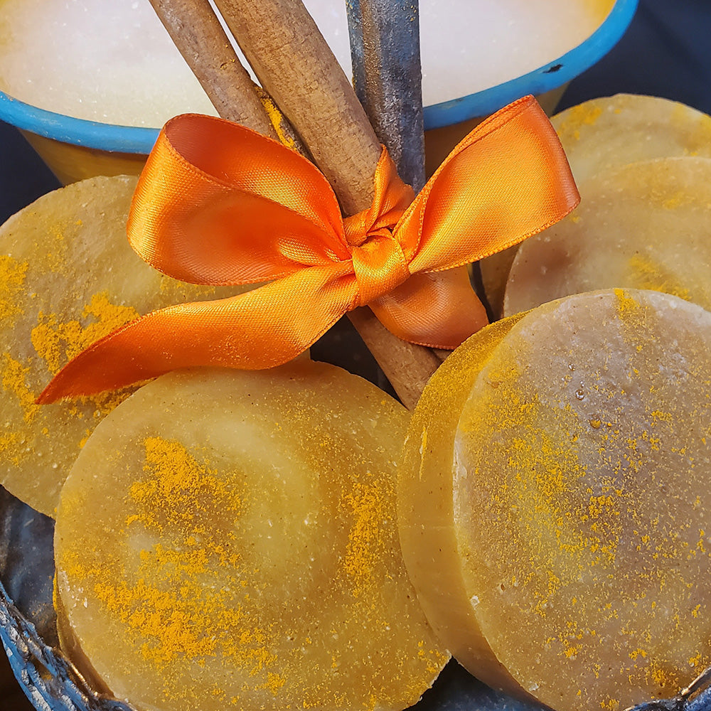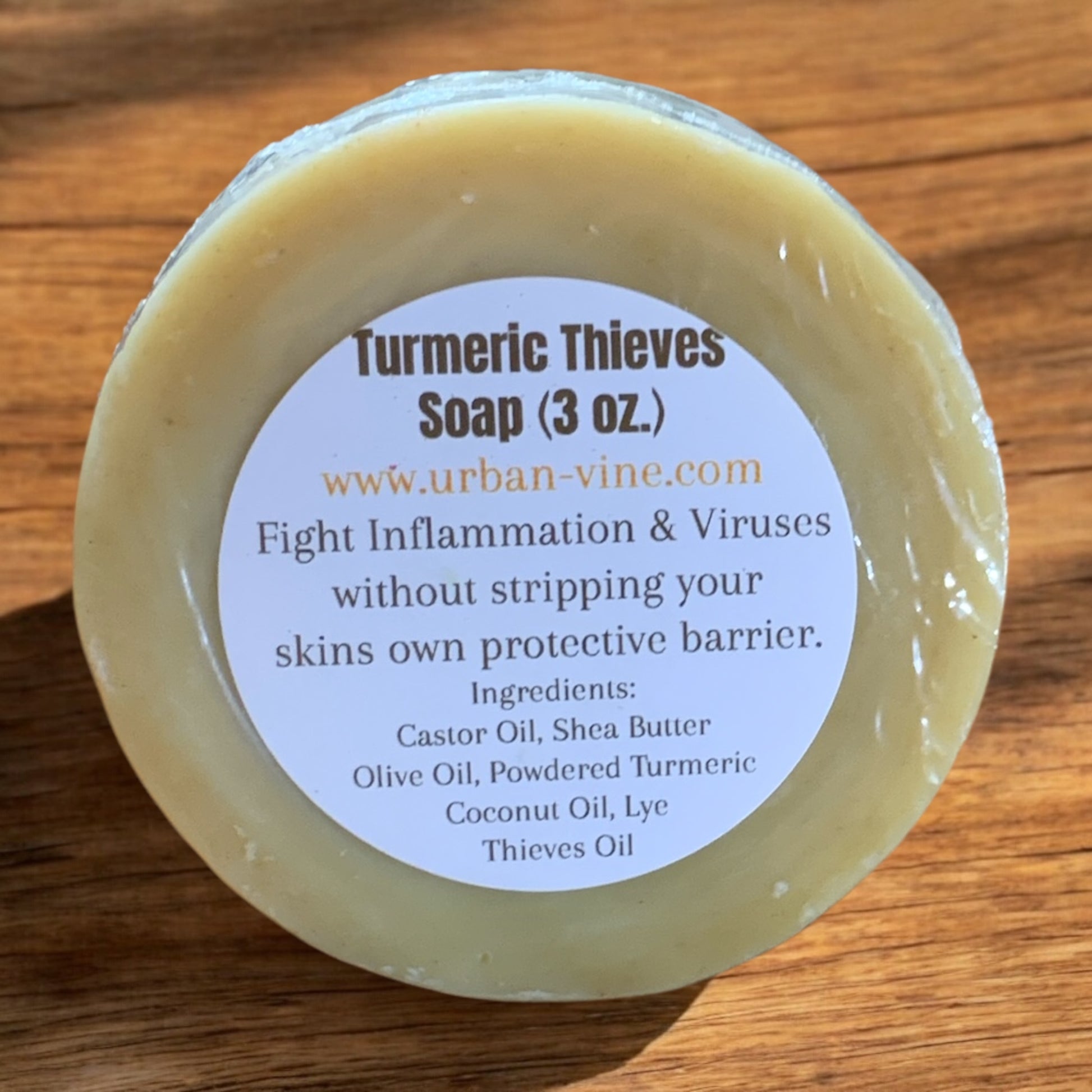 Ingredients: Olive Oil, Shea Butter, Coconut Oil, Castor Oil, Thieves Essential Oil (Clove, Lemon, Cinnamon Bark, Eucalyptus Radiata, and Rosemary essential oils ) Turmeric Powder